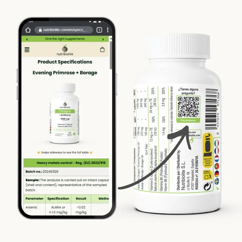 When looking for a food supplement that offers hormonal balance and comprehensive support for your well-being, quality makes the difference. Nutribiolite’s Evening Primrose & Borage Complex combines cold-pressed evening primrose and borage oils with bioactive vitamins – vitamin B6 (pyridoxal-5-phosphate) and natural vitamin E (D-alpha-tocopherol) – delivering a superior formula that maximizes purity, efficacy, and bioavailability. A commitment to quality that takes care of you from within.